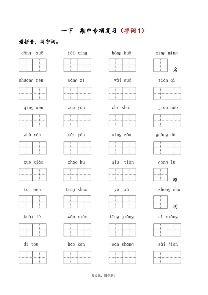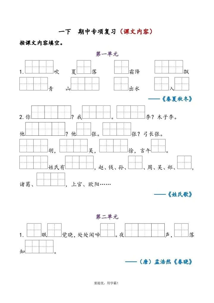 今日分享:一年级下册语文期中复习专题(完整电子版可打印)!文章配套电子版可直接打印,家长无需额外整理,根据孩子薄弱点灵活安排练习,循序渐进、扎实提分✨