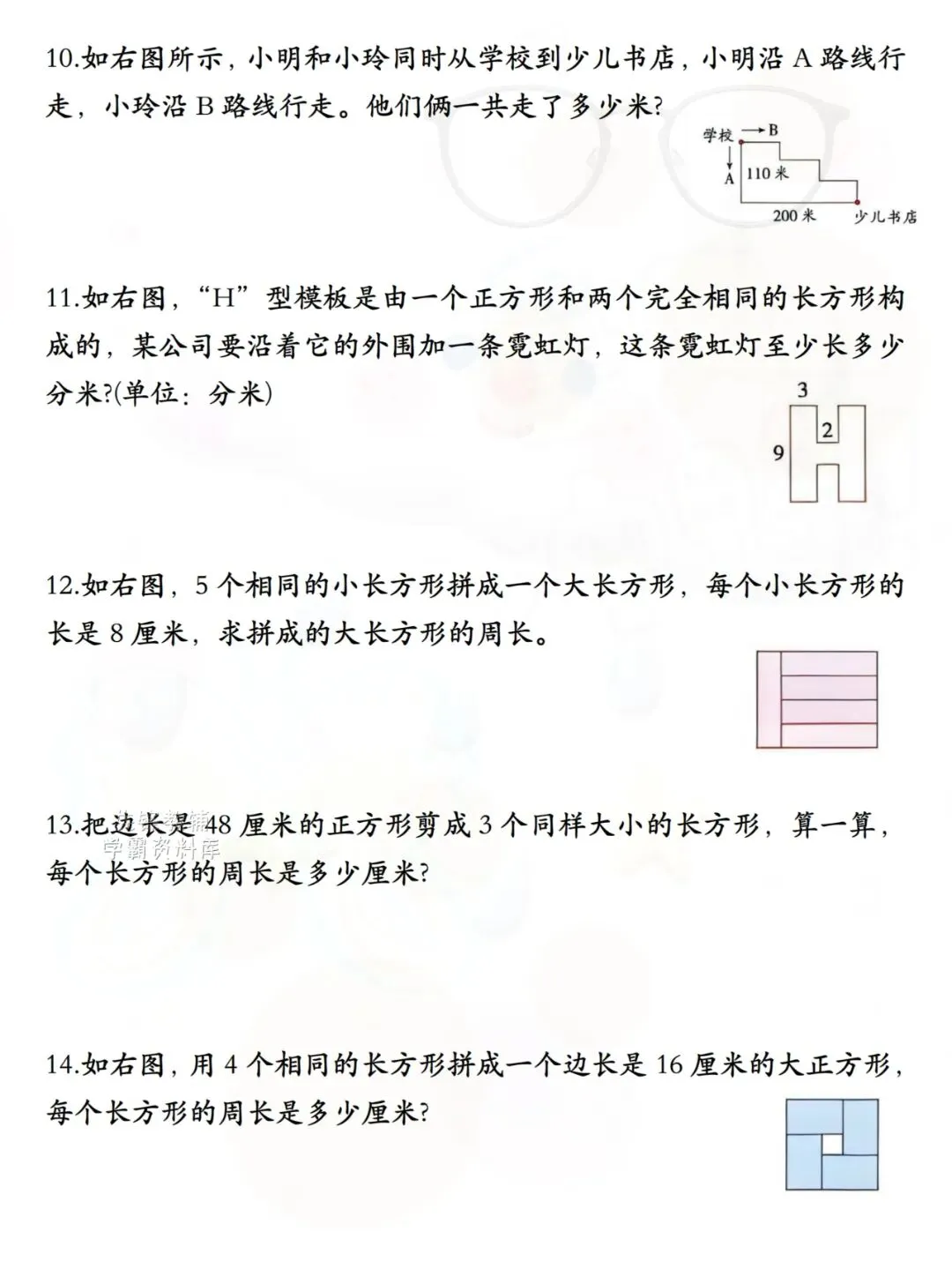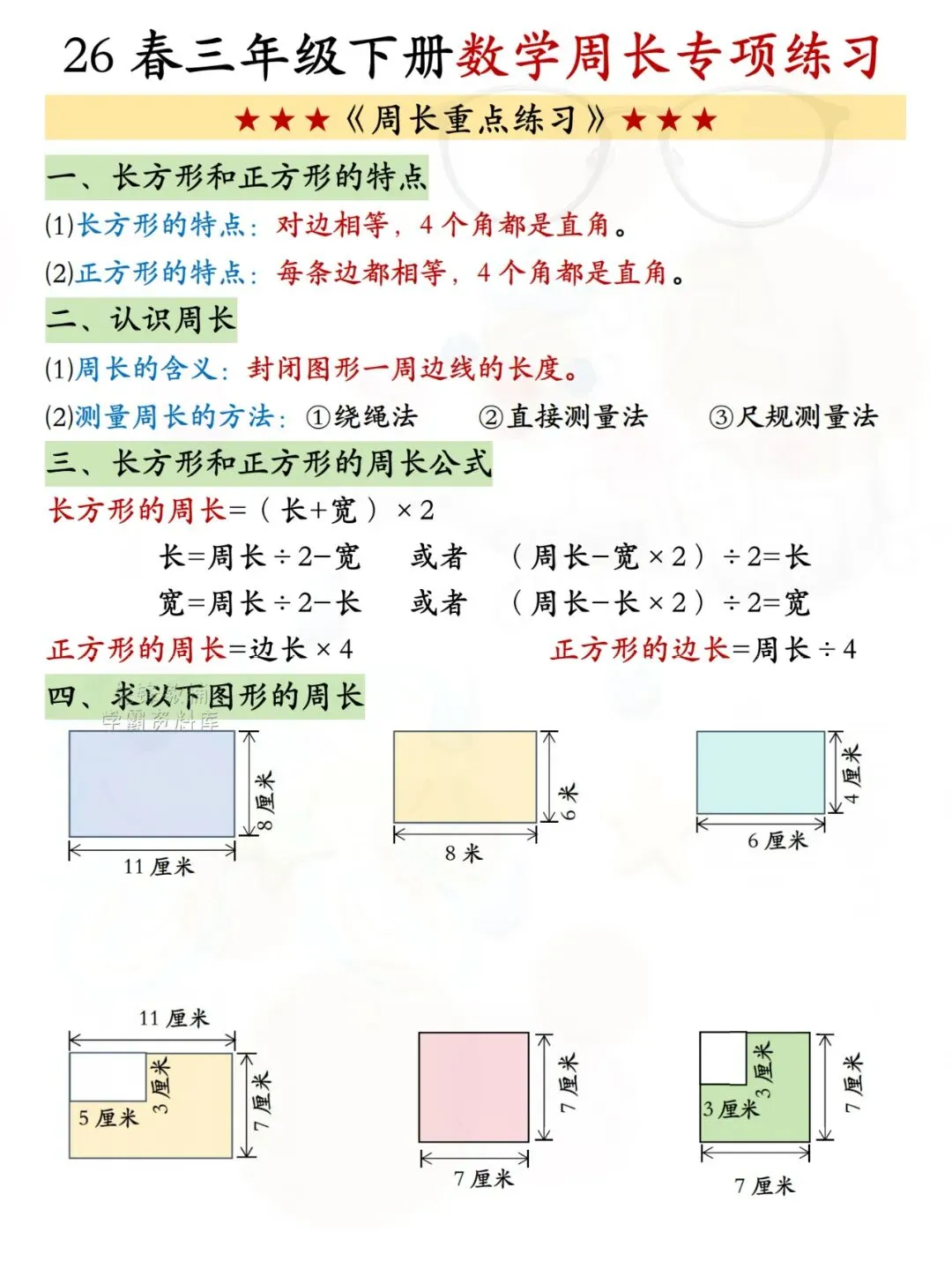 26春三年级下册数学周长专项练习 电子版可下载可打印