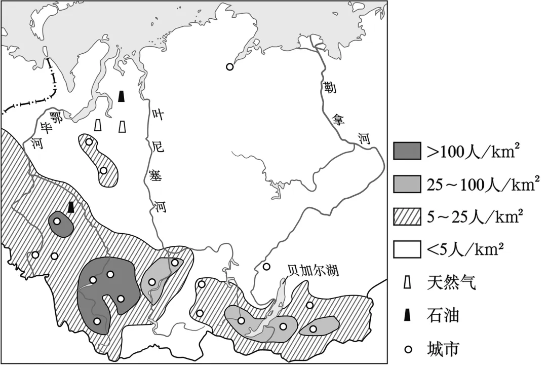 解析:该地区北部从20世纪后期以来发现了大量的石油和天然气资源,随着这些资源的开发,人口出现了由南向北的迁移趋势。故选B。