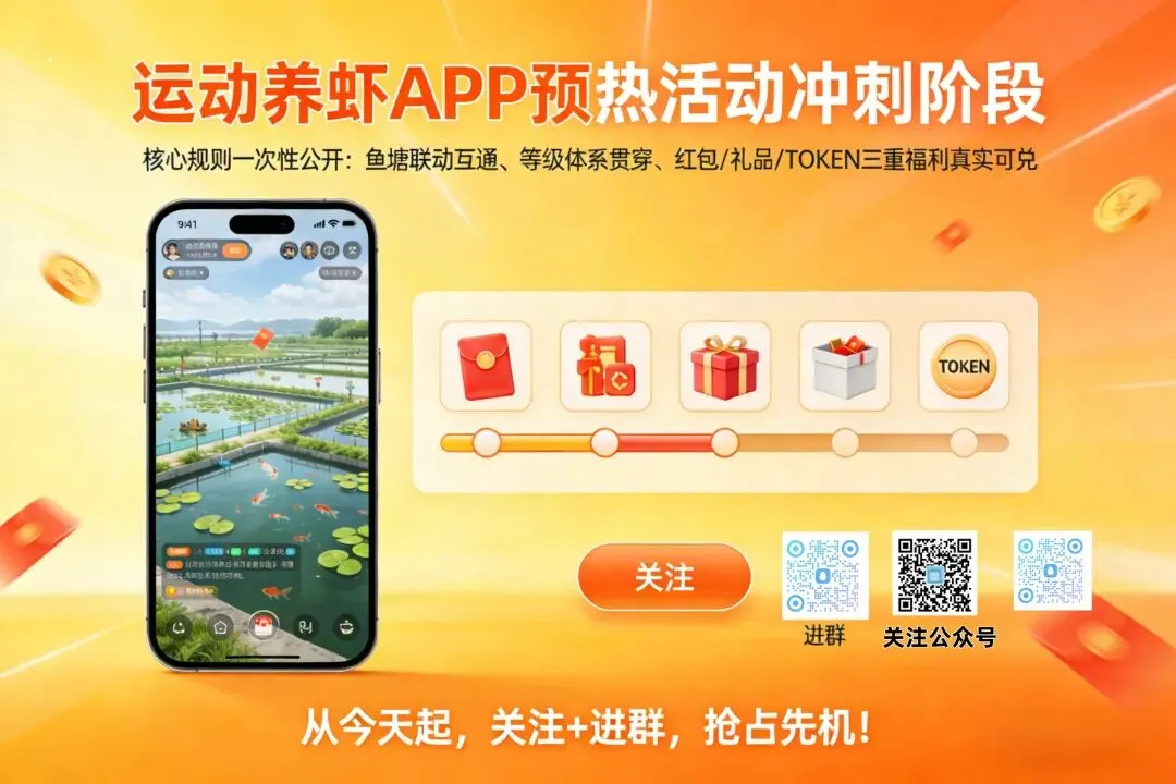 运动养虾APP预热冲刺!鱼塘联动+全玩法解析,进群领红利