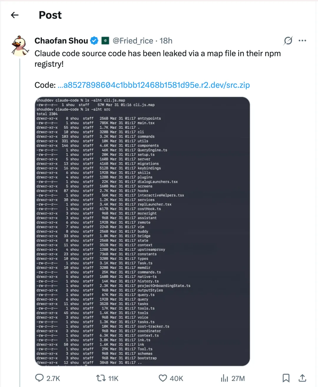 Source map 泄露源代码本身对使用者几乎没有直接风险:Anthropic 已确认无用户数据、无 API 密钥泄露,所以没有任何用户的隐私被泄露,也没有任何直接的安全风险。
