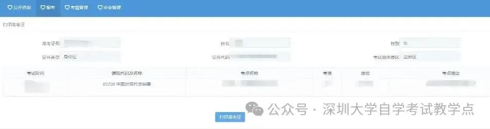 第四步:仔细核对信息,确认无误之后点“打印准考证”