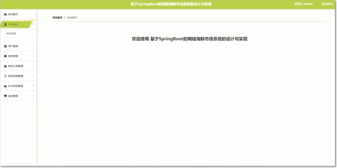 管理员后台主要功能是:用户管理、商家管理、商品分类管理、商品信息管理、秒杀商品管理、系统管理等功能。