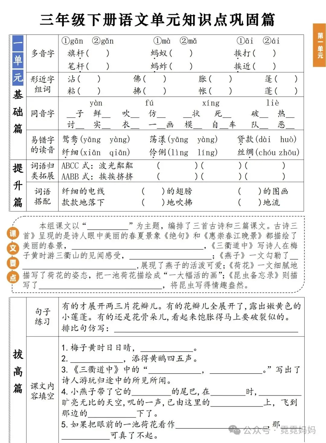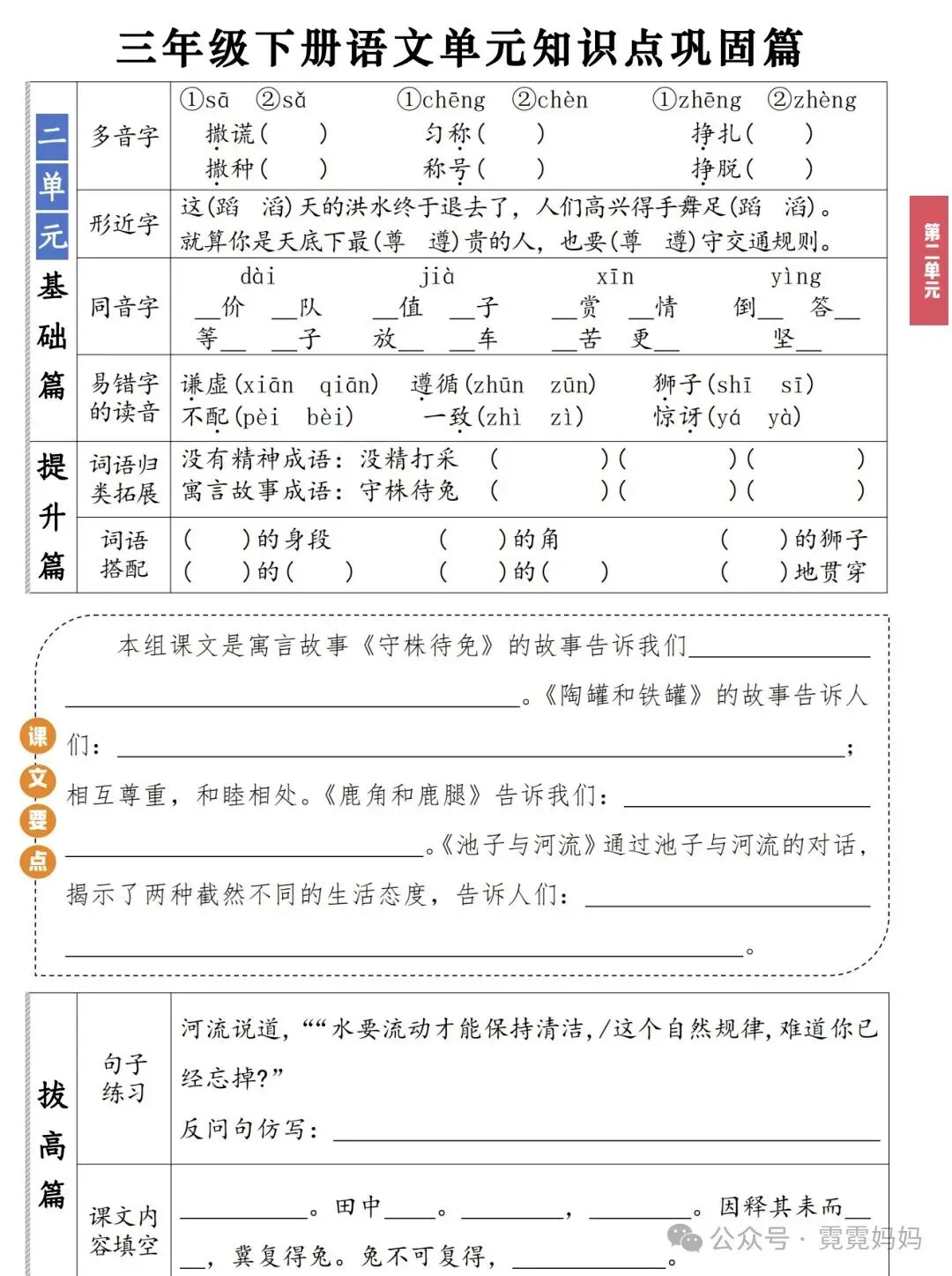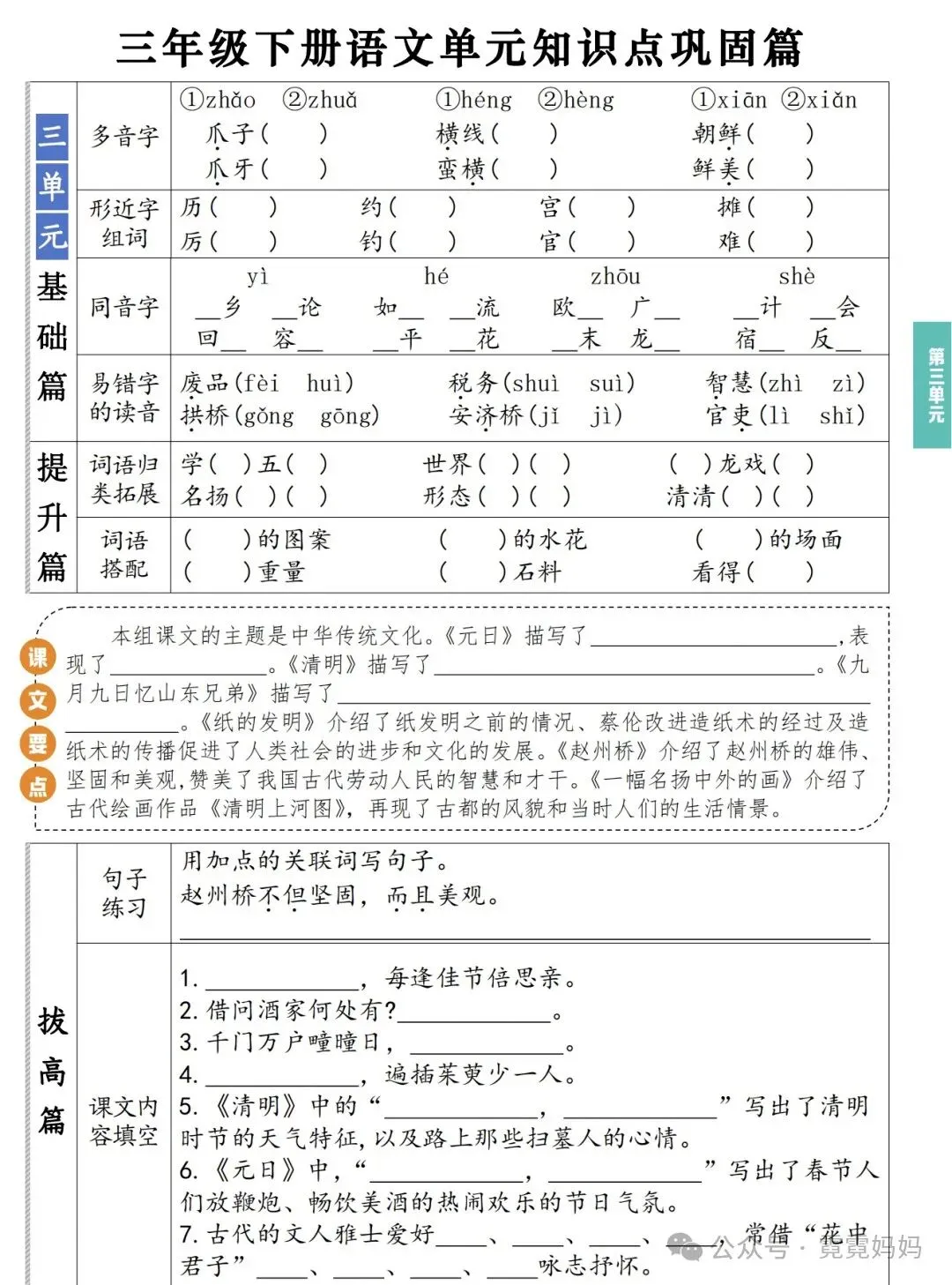 25年三年级下册语文单元知识点巩固篇(可下载打印)