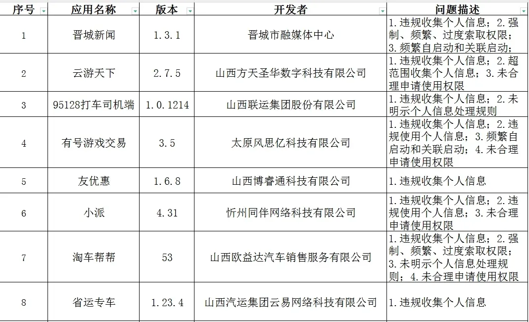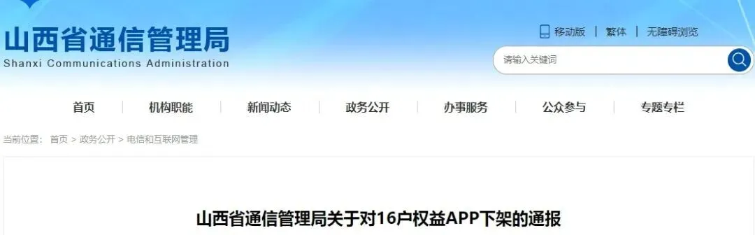 依据网络安全法、电信和互联网用户个人信息保护规定、规范互联网信息服务市场秩序若干规定等法律法规,省通信管理局持续开展App侵害用户权益专项整治行动,依法严厉打击App违法违规收集使用个人信息等行为。前段时间,针对2024年第一批次整改不到位的App,已进行公开通报,要求限期整改。截至目前,尚有16款App未按要求完成整改,现进行下架处理。
