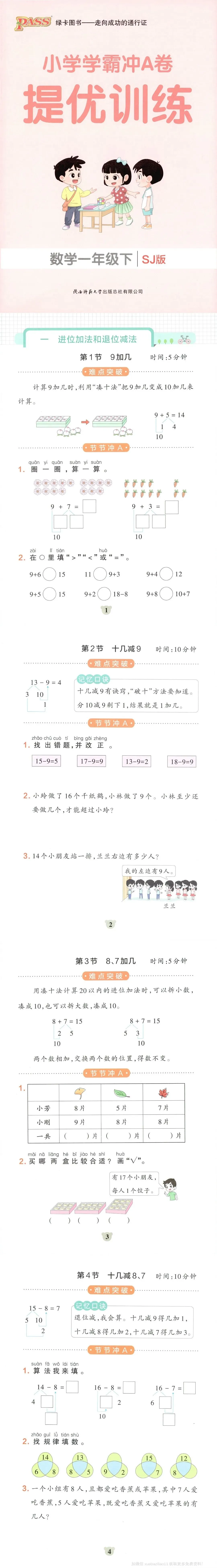 苏教版数学一年级下册《小学学霸冲A卷》(可下载)26春