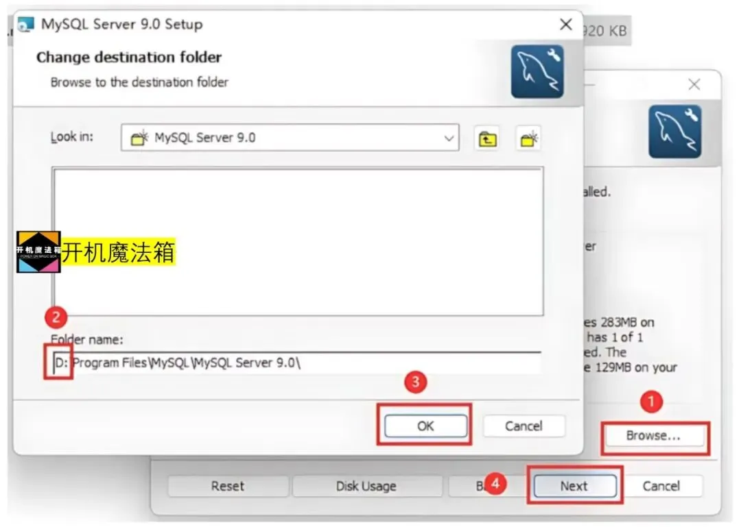6、①点击【Browse】②修改路径地址中的第一个字符C可更改安装位置(如:把C改为D软件将安装到D盘)点击③【ok】④点击【Next】。