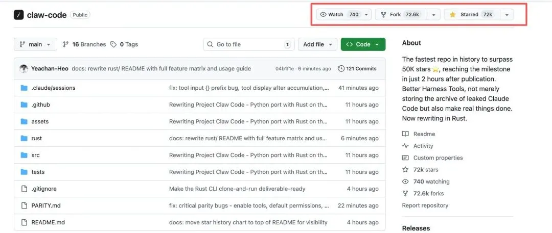 更戏剧性的是 GitHub 上的连锁反应。开发者 instructkr 创建的备份仓库在短短 2 小时内就突破了 50,000 颗星,成为 GitHub 历史上增长最快的项目之一。更离谱的是,Fork 数(超过 60,000)竟然碾压了 Star 数——这意味着开发者们不只是围观,而是在疯狂“搬运”代码,确保这些源码永远无法被收回。