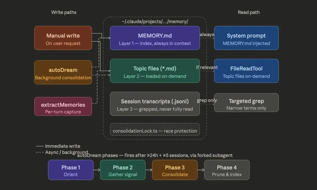 与传统对话历史的区别: 传统的聊天机器人只是线性地记录对话,而 Claude Code 的记忆是结构化、可索引、主动维护的。这让它能在长时间、多轮次的复杂任务中保持“记忆清晰”,不会因为对话太长而“忘记”早期的重要信息。