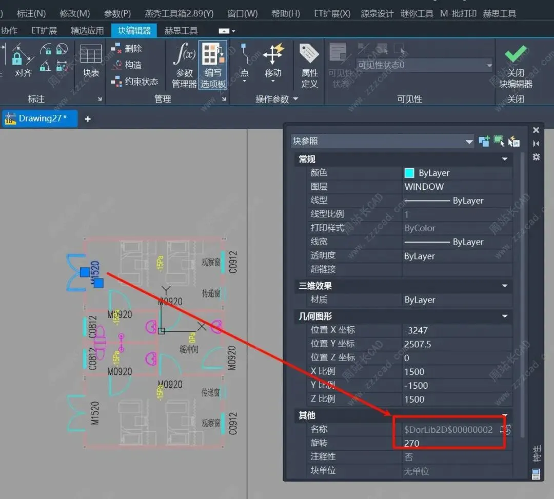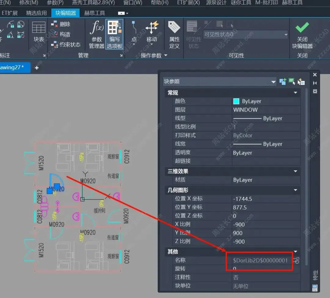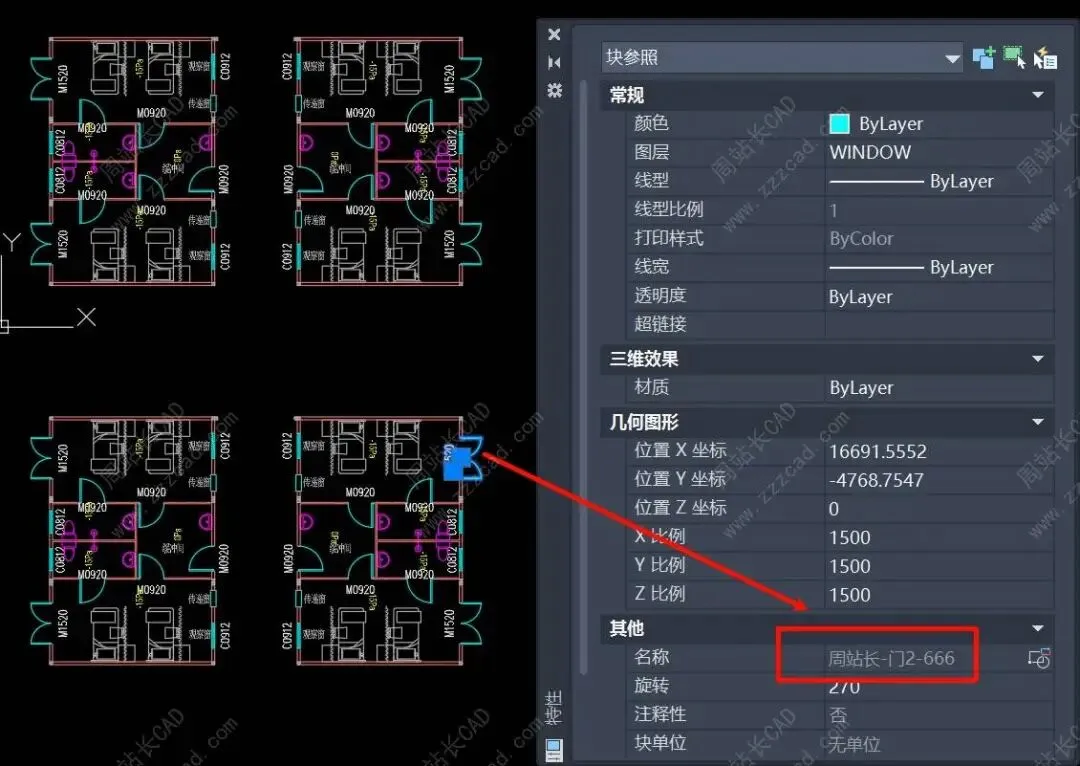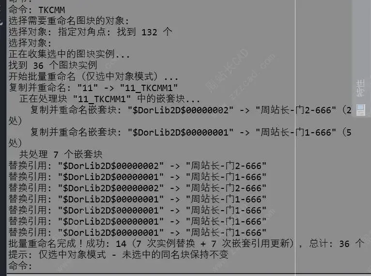 我们来验证下,因为我们的设置,我们这次处理只会更改下面部分图块名称,含选中的嵌套块。