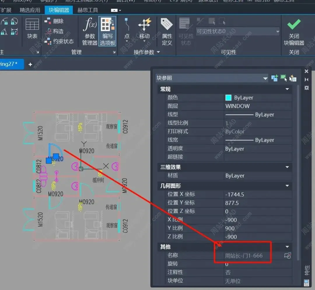 假如我需要把这两个门的图块改成:周站长-门1-666,周站长-门2-666这种格式。