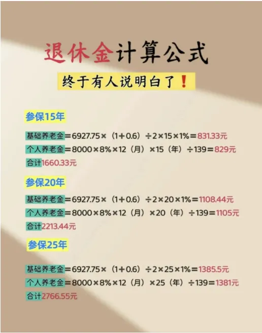 退休金计算公式,终于有人说明白了#退休金计算公式详解 #养老金计算方法 #不同参保年限对比 #如何计算你的退休金 #养老金政策解读 #退休生活规划