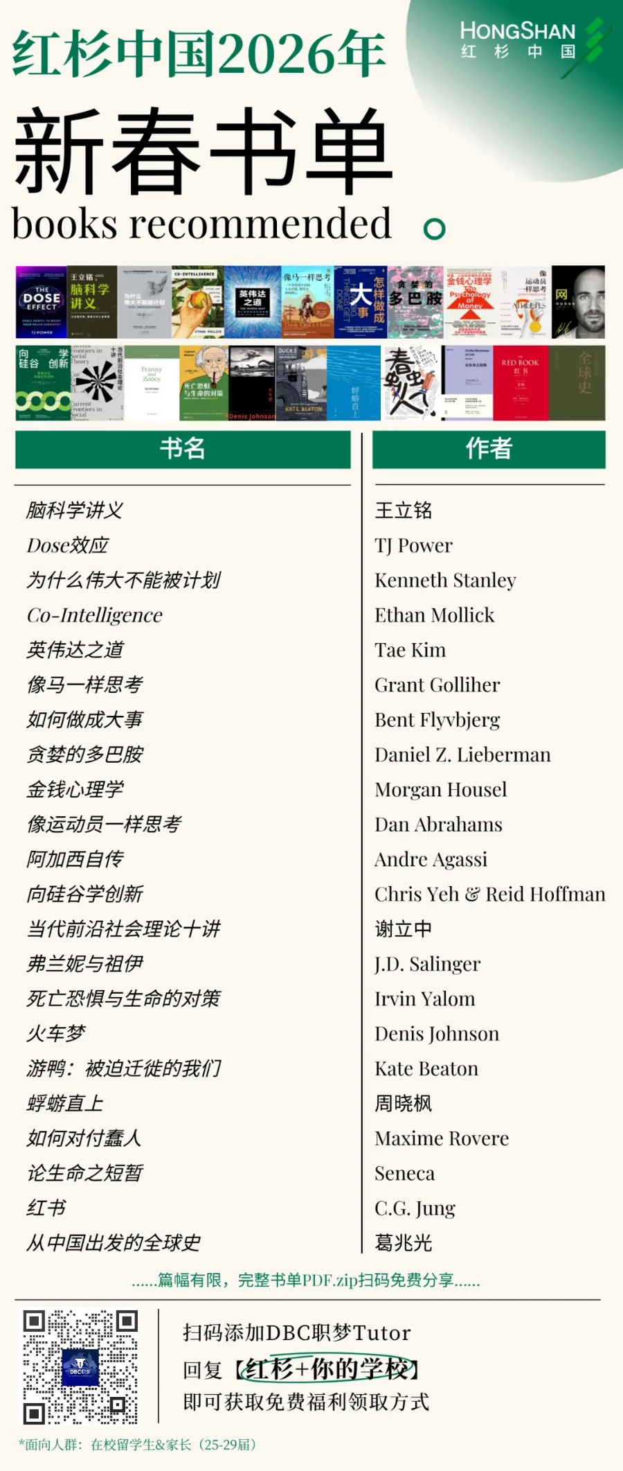 在遇到“What kind of books do you read?”这个问题时,相信只要说到是由红杉中国推荐的书籍,都能为你的面试增色不少。