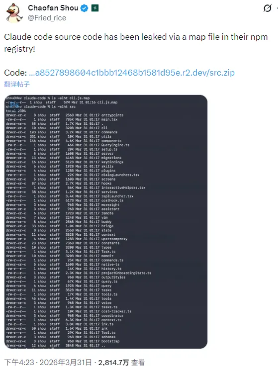他在 Claude Code 的 npm 包里发现了一个 59.8MB 的 .map 文件。