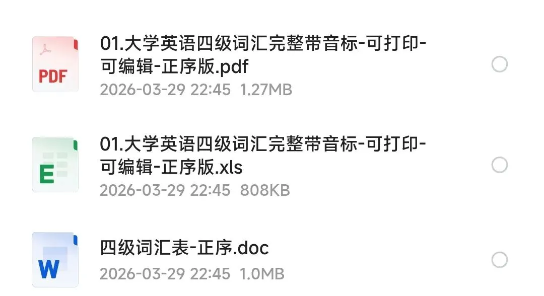 🔤四级单词高效记忆:4500大纲词汇+精准音标,正序/乱序/默写三版齐全,快速过级。
