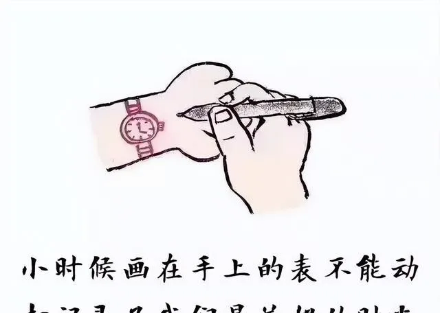 这个画在手腕上的圆圈小表,当年谁家真有块手表都算大件,没得用的小孩就拿水笔在手背上画一块,画完还得吹干别蹭掉,老师瞅见还要逗一句“你这名表几点了”,其实心里别提多美了,小时候炫耀都不讲究,画出根指针能对个时间自己看一上午。
