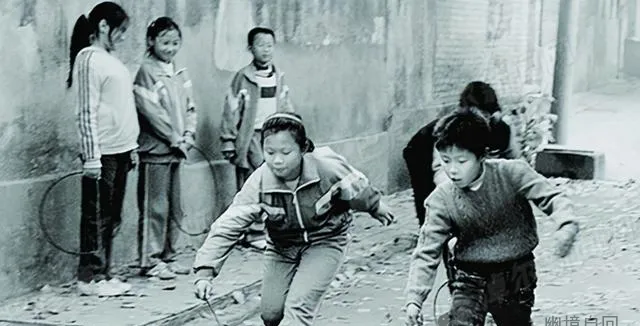 这个铁圈一上手,满大街都是哐啷哐啷的响声,男孩们在巷子口一比谁推得稳,摔了爬起来拍拍灰接着玩,铁环掉沟里还得用根树枝捞,鞋底磨破老娘说两句舍不得不让玩,到了现在谁还给孩子讲这个,速度和激情都在那条灰道上了。