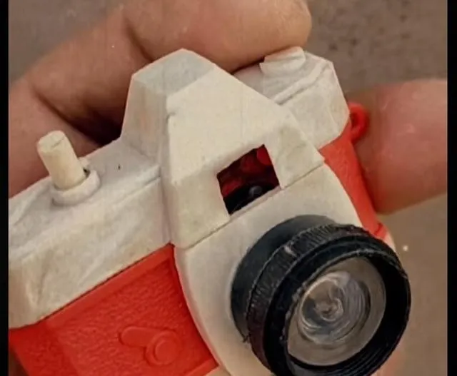 图里这小玩具相机,看着傻头傻脑的,小时候攥在手里谁见了都要来一张假拍照,按一下有小纸卡弹出来,也没人管拍得啥样,就是图个姿势洋气,家里大人还笑你装模作样,其实小时候的幸福真就这么点事。