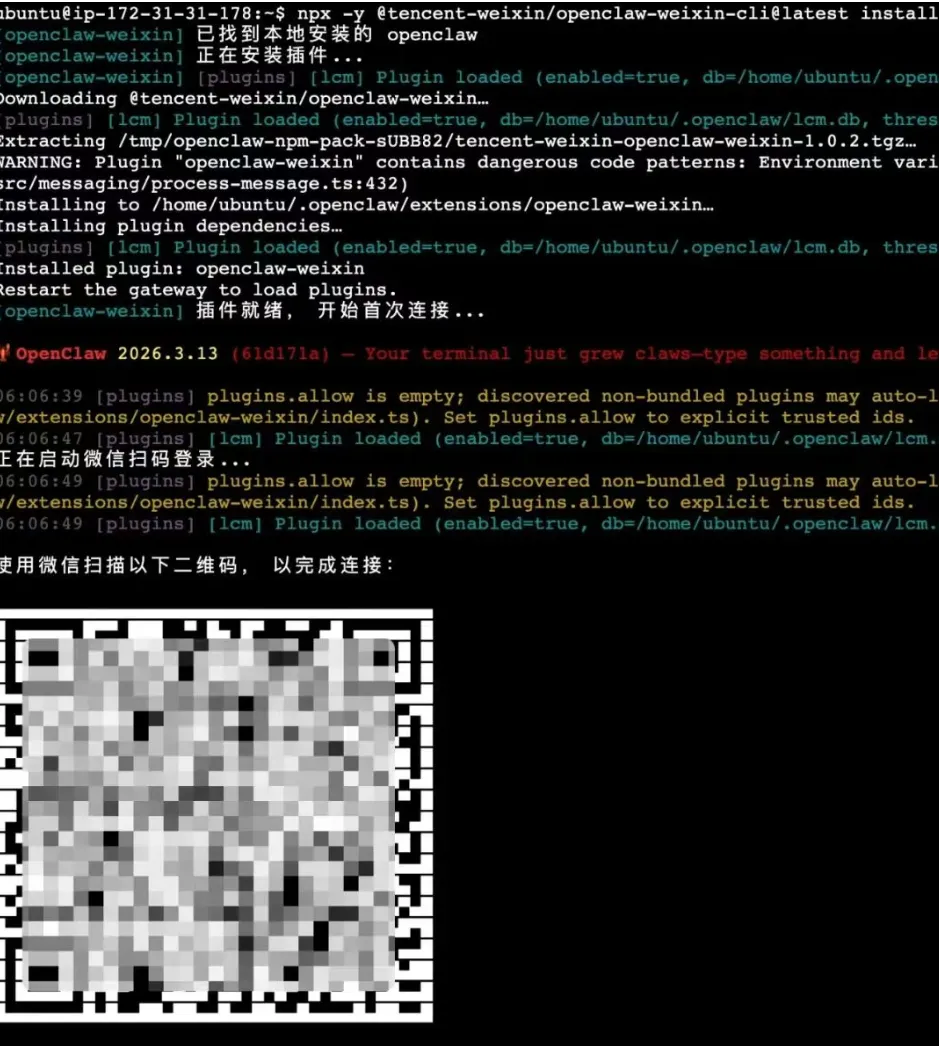 用刚才启用插件的那个微信账号,扫第二步生成的二维码。扫码后确认授权,稍等片刻,系统会自动重启Gateway。