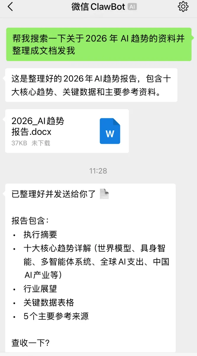 但仔细想想,这可能是AI落地最“微信”的方式——不改变用户习惯,不强制你学新东西,就在你最熟悉的对话框里,多了一个能干活的人。