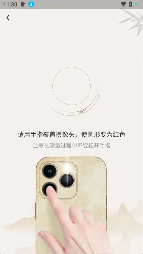2、然后按照界面提示使用手指覆盖手机摄像头,它就会进行把脉
