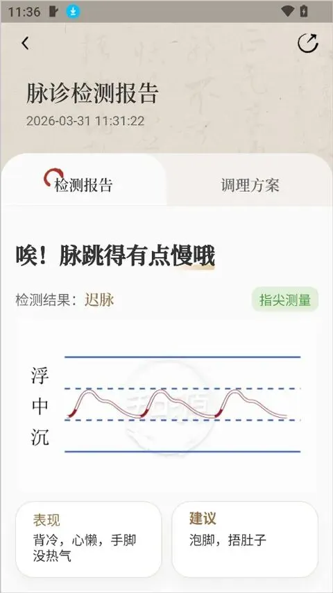 4、把脉完成后它会形成检测报告和调养方案给用户参考
