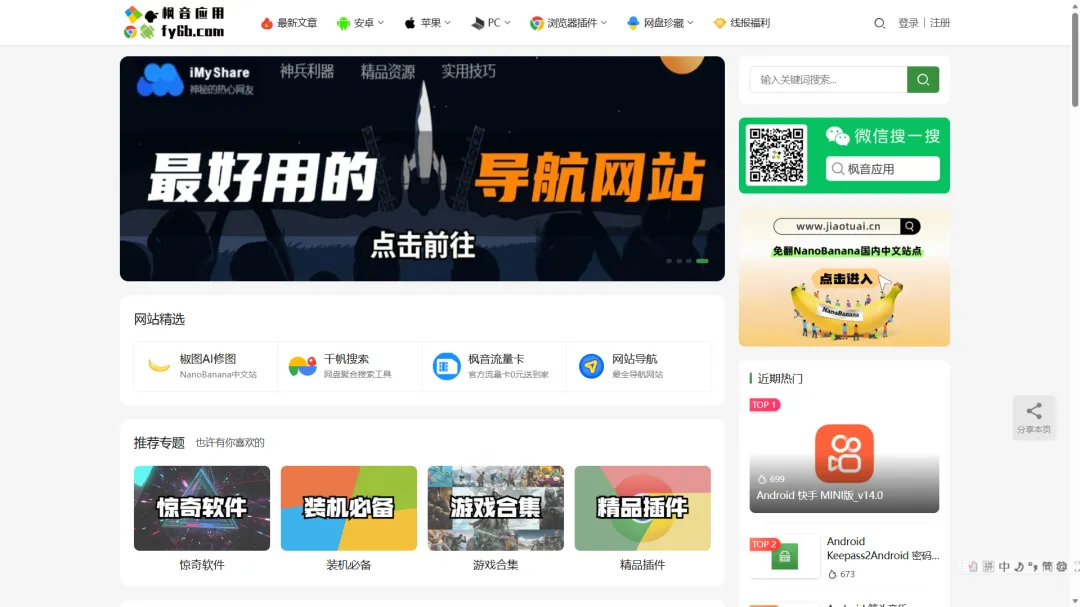 同为综合类实用资源网站,主打手机端和电脑端软件分享兼顾浏览器插件的下载。文章内容涵盖办公、工具、系统优化等多场景的干货分享和软件下载。