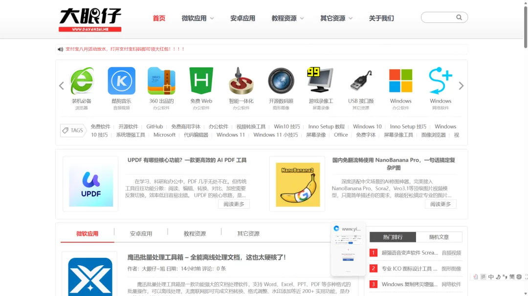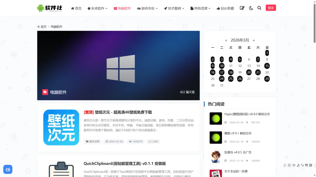 老牌综合软件资源网站,已运营超12年。主打Windows、安卓端免费绿色软件、系统镜像与实用教程分享,覆盖多场景化内容,更新及时且内容丰富。