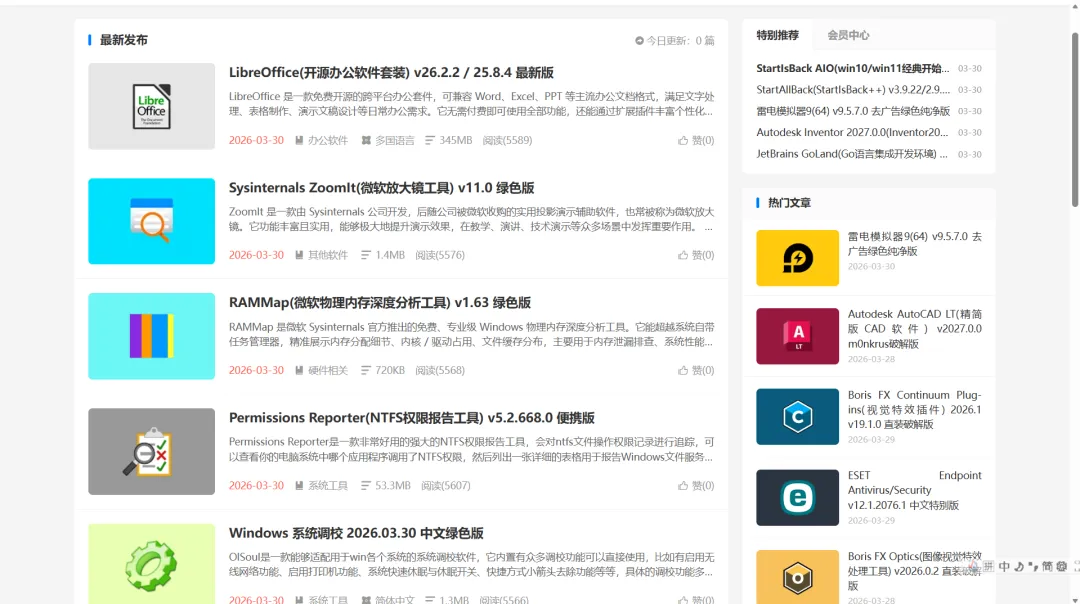 主打各类精简去广告、免安装、已授权软件及系统镜像软件。