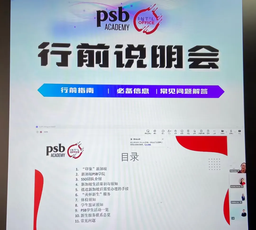为帮助即将赴新加坡PSB学院就读的学子全面做好行前准备,清晰了解留学全流程与在新学习生活要点 ,近日新加坡PSB学院举办了行前说明会。活动围绕新加坡概况、PSB学院介绍、SSO学生支持服务、生活常识、入境手续、学生签证、校园活动及在线答疑等核心内容展开,为同学们送上一份详细、实用的留学“通关指南”。