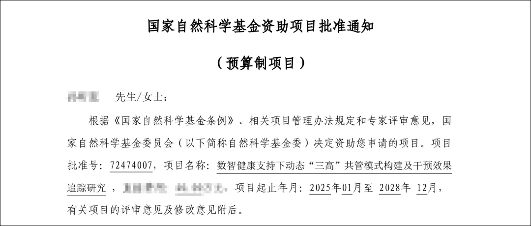 在此背景下,北京大学公共卫生学院孙昕霙教授团队牵头,申报开展《数智健康支持下动态“三高”共管模式构建及干预效果追踪研究》项目,合作研究单位包括营动智能技术(山东)有限公司及多省市疾控中心。该项目成功获得国家自然科学基金面上项目立项(项目编号:72474007),是一项国家级科研课题,旨在构建精准、动态、可推广的社区“三高”共管干预模式,为政策落地与基层实践提供科学依据。