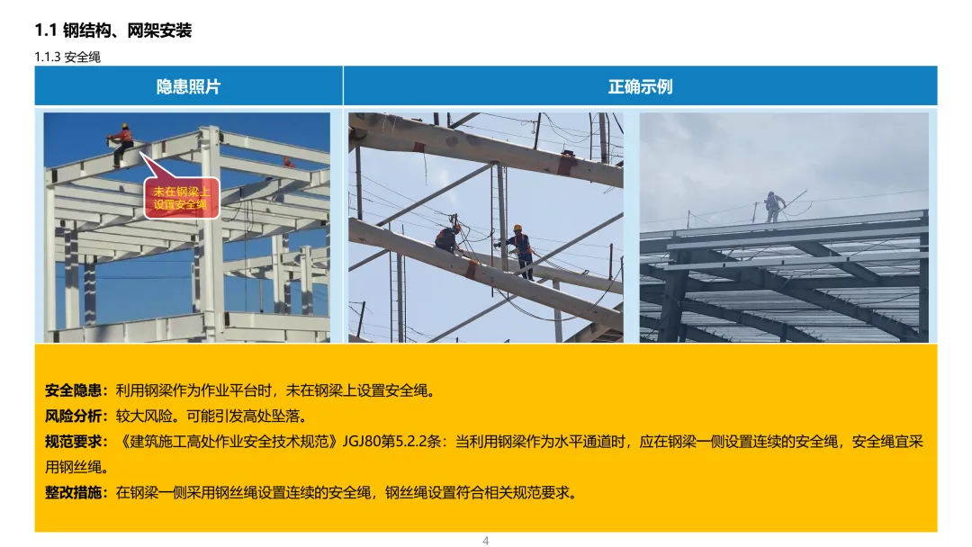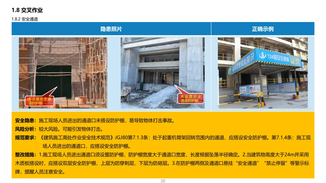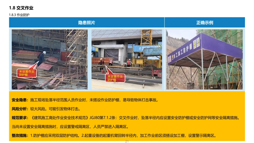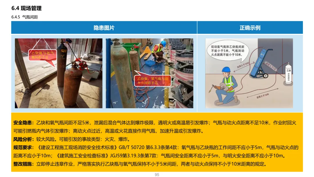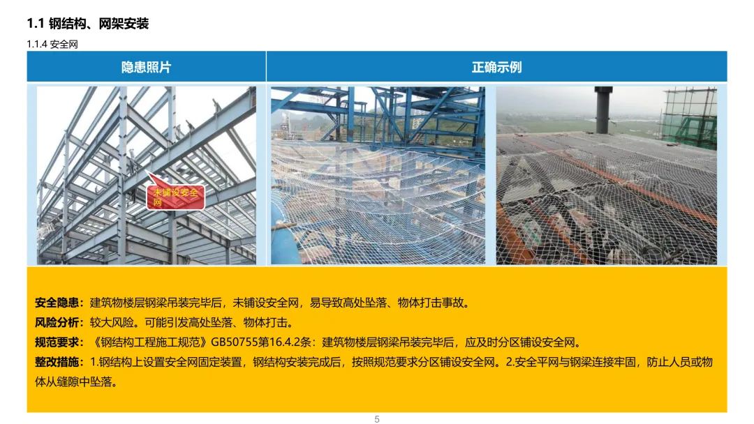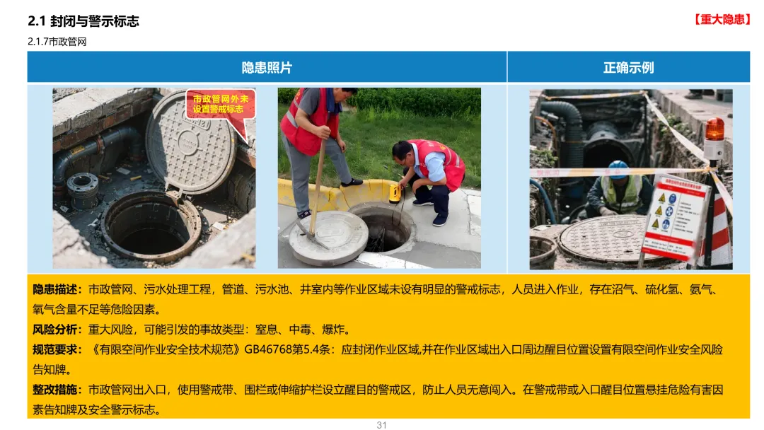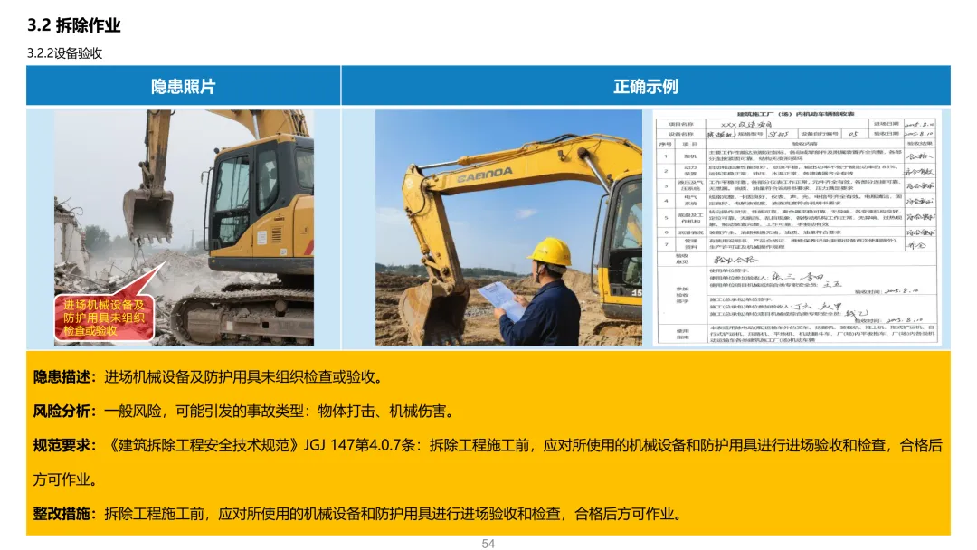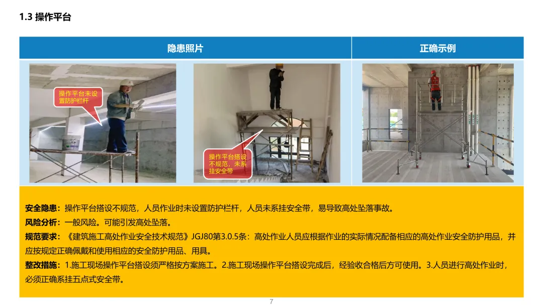 江苏省住建厅编制的“高处作业、有限空间、动火作业等6大高风险作业事故隐患辨识图集”系统梳理了高处作业、有限空间、拆除作业、临时堆载、冒险作业、动火作业六个关键环节中常见且易被忽视的安全隐患。通过高清实景图片、典型隐患示意图与规范条文对照,直观呈现隐患形态,明确违反的规范条款,剖析潜在风险与可能后果,并提供相应的正确做法示例。