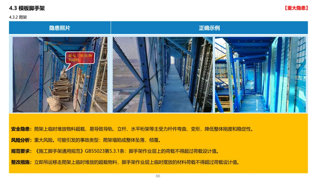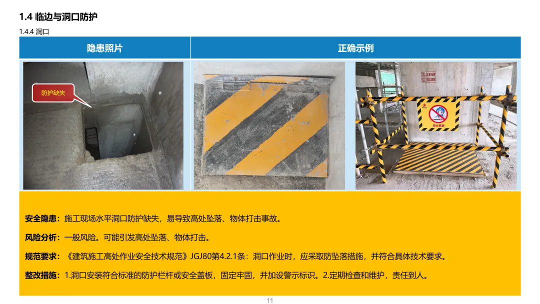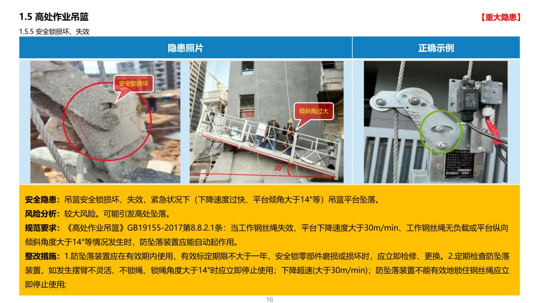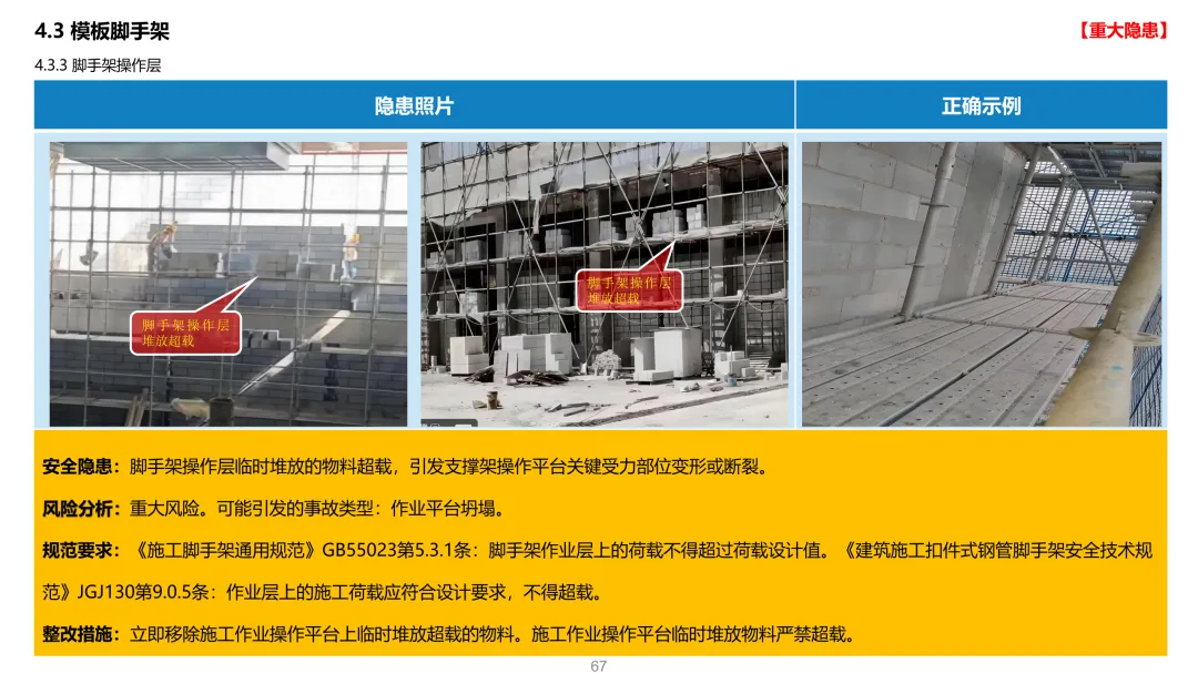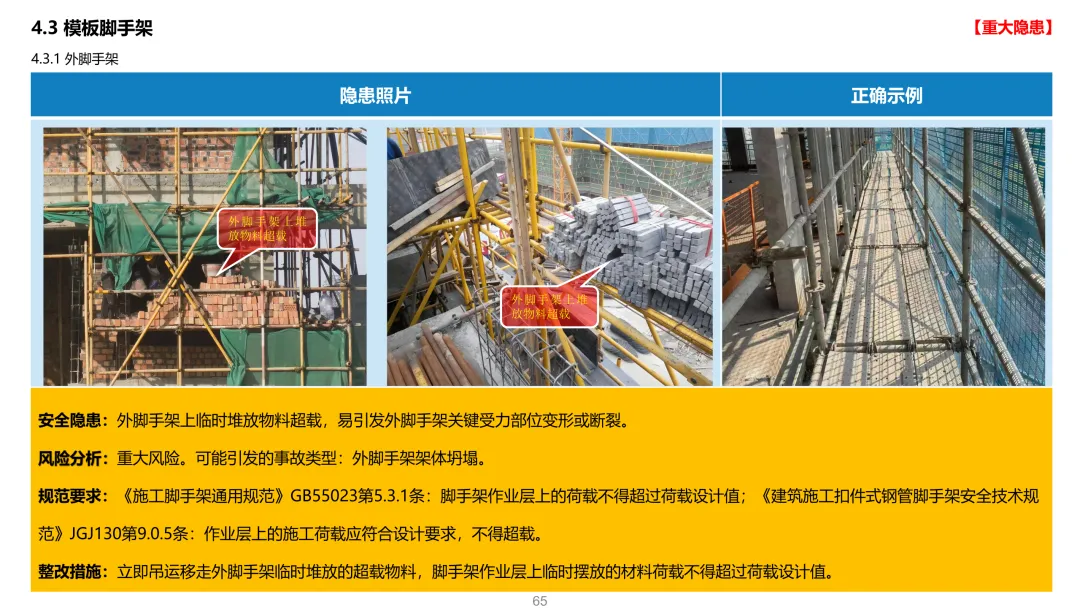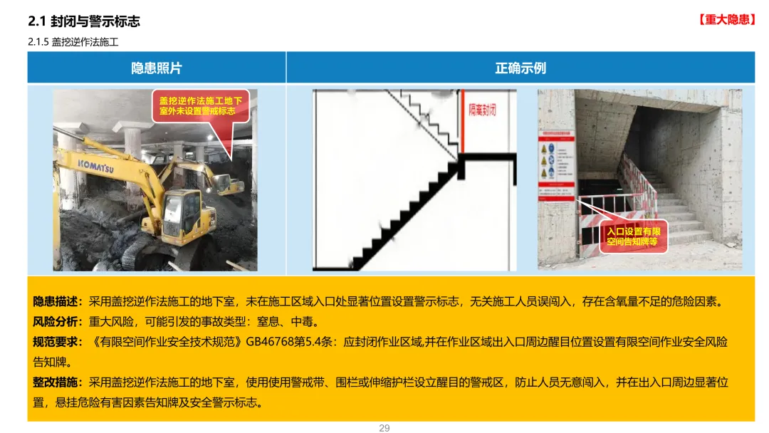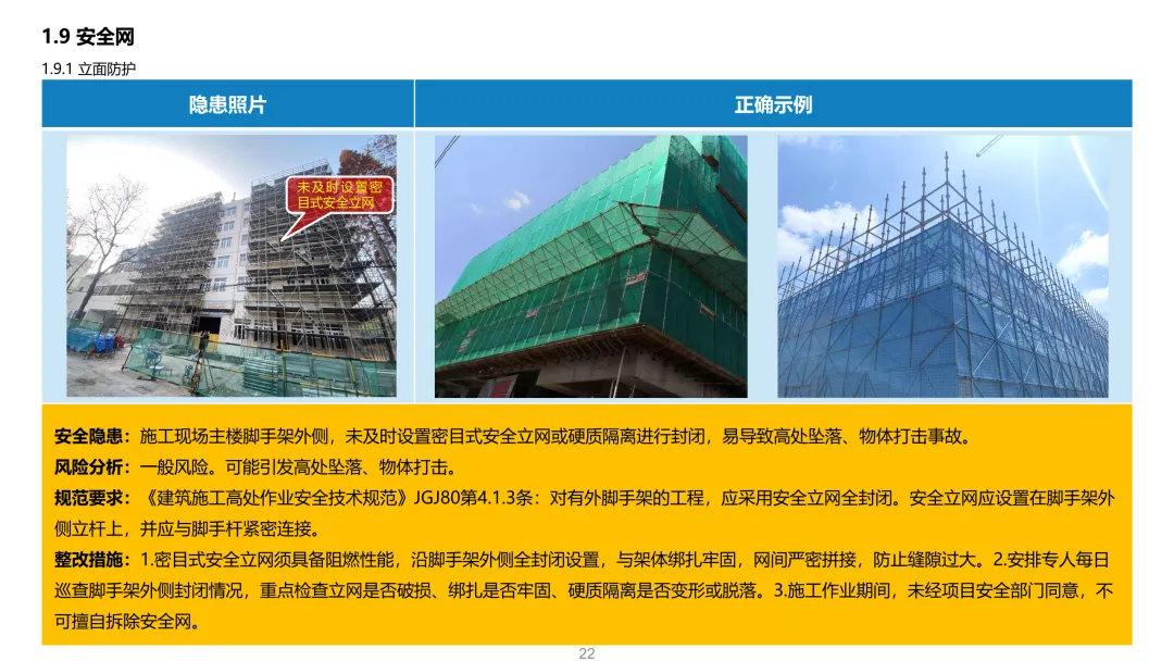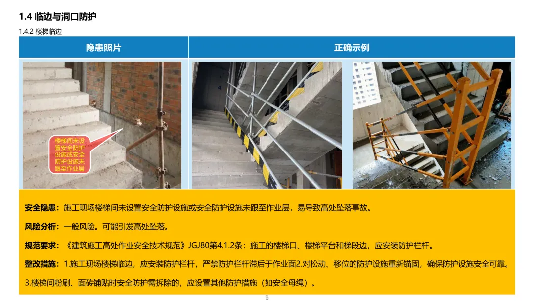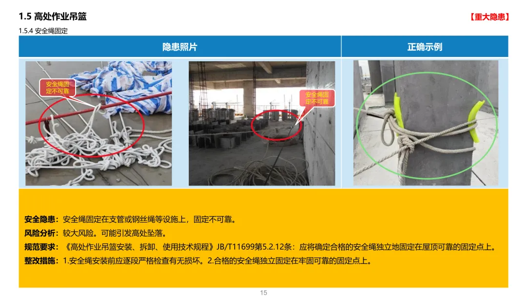 江苏省住建厅编制的“高处作业、有限空间、动火作业等6大高风险作业事故隐患辨识图集”系统梳理了高处作业、有限空间、拆除作业、临时堆载、冒险作业、动火作业六个关键环节中常见且易被忽视的安全隐患。通过高清实景图片、典型隐患示意图与规范条文对照,直观呈现隐患形态,明确违反的规范条款,剖析潜在风险与可能后果,并提供相应的正确做法示例。