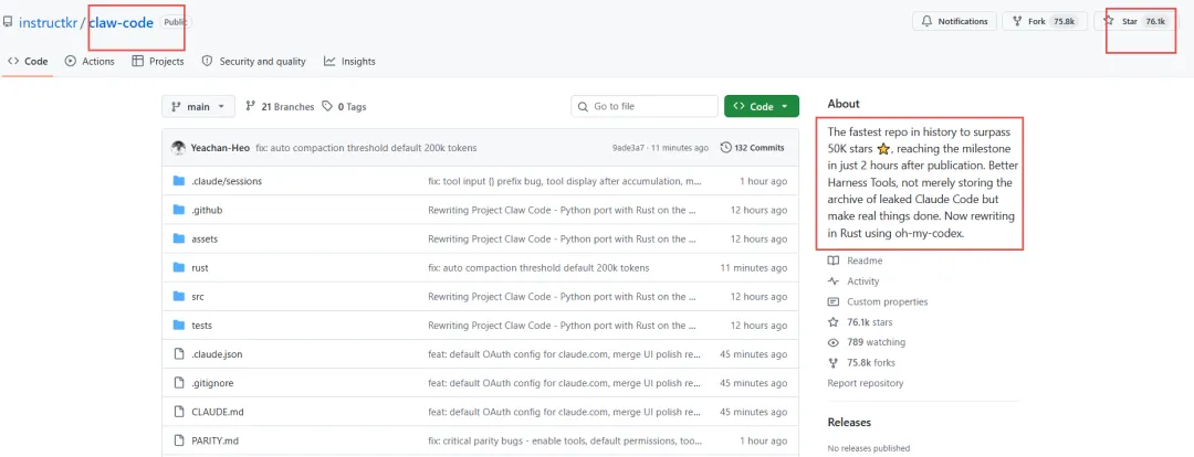 昨天,Anthropic 的 Claude Code 源码被动开源了,想必大家都刷到了。76k star了
