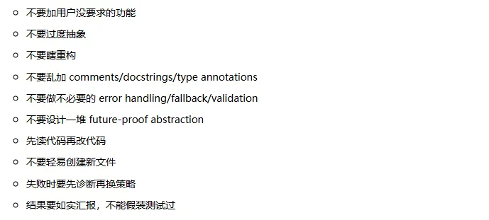 再看一个让我印象深刻的细节:getSimpleDoingTasksSection() 这一段,基本可以看作 Anthropic 对 AI 工程师行为规范的制度化表达。