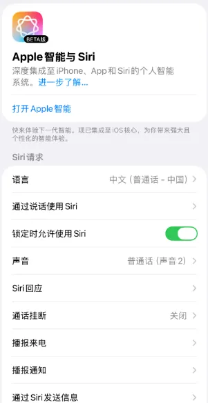 “Apple 智能与 Siri”选项,