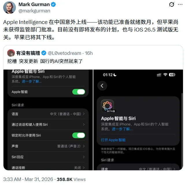 苹果为国行市场准备的苹果智能,