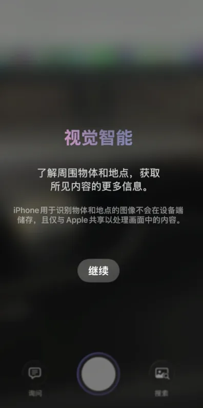 视觉智能:长按相机按钮可识别物体,但国内无法使用其“询问”(GPT识图模型)和“搜索”(谷歌搜图)功能。