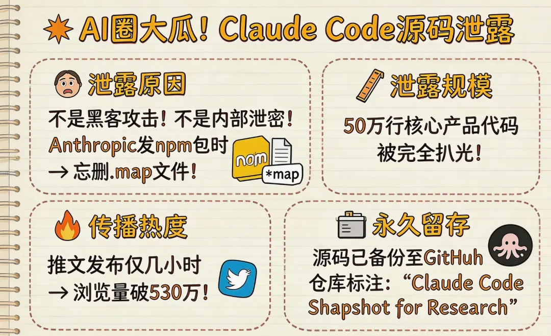昨天AI圈炸了一个大雷:Claude Code源码泄露,50万行代码被扒光。