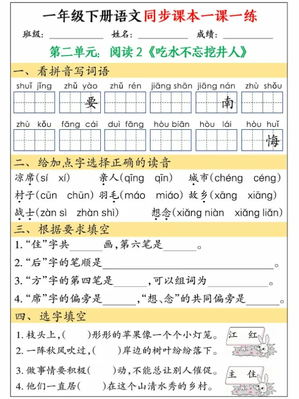 一年级下册语文同步练习(36页PDF)免费领!课后巩固+预习神器,家长速存