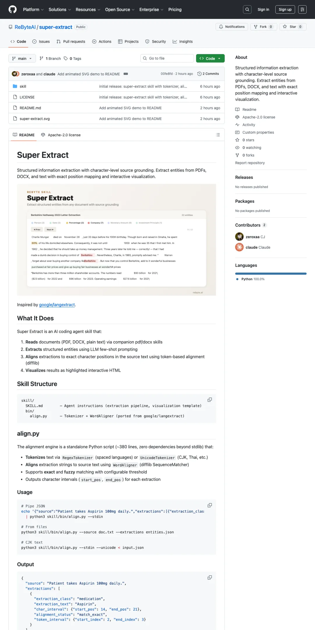 Super Extract 已经开源。它是 AI 编程助手的一个 Skill——装上之后,你的 AI 助手就多了一项能力:提取信息的同时,自动标注出处。