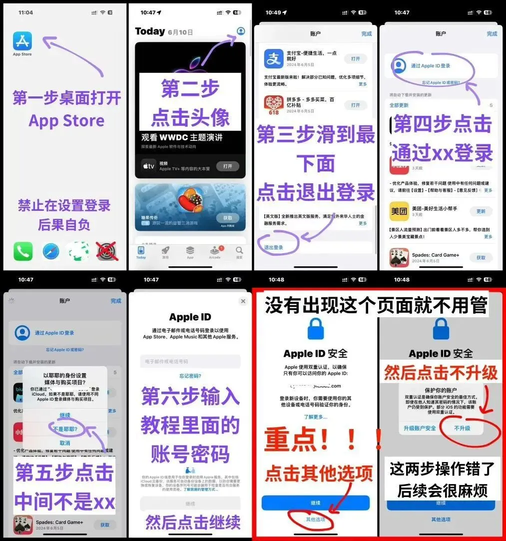 使用后及时退出:下载完成后,建议尽快退出当前账号,并切换回个人常用 Apple ID; -