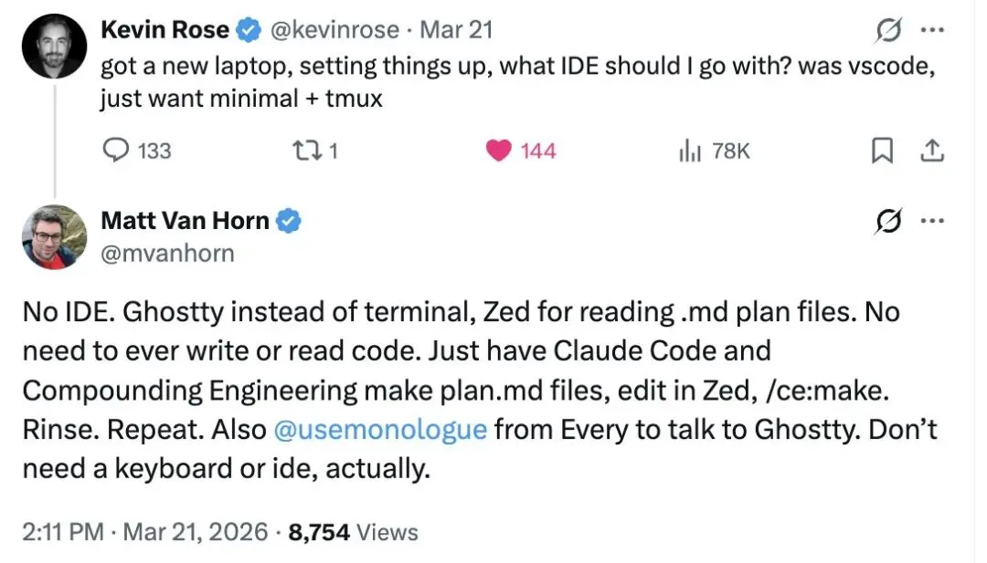 有人在 X 上问:用什么 IDE?