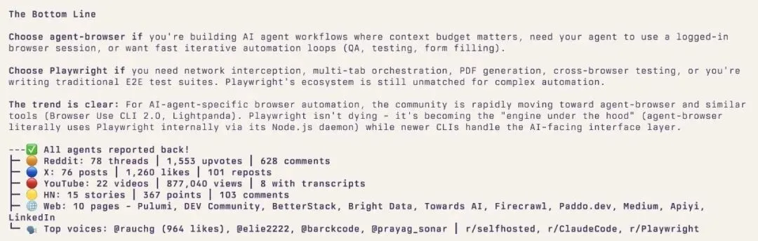 他在 Vercel 的 agent-browser 和 Playwright 之间做选择。与其读文档,不如直接跑: