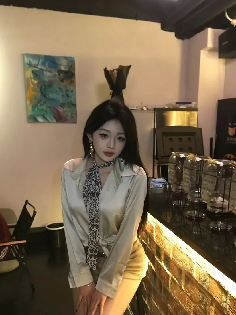 第二张图更是绝了,米色衬衫配豹纹丝巾,坐在咖啡馆吧台前面,整个人散发着一种成熟御姐的气场。来乐app的弹幕里全是”太美了””心动了””这谁顶得住”,我看完直接点了关注,现在每天晚上就等着她开播。