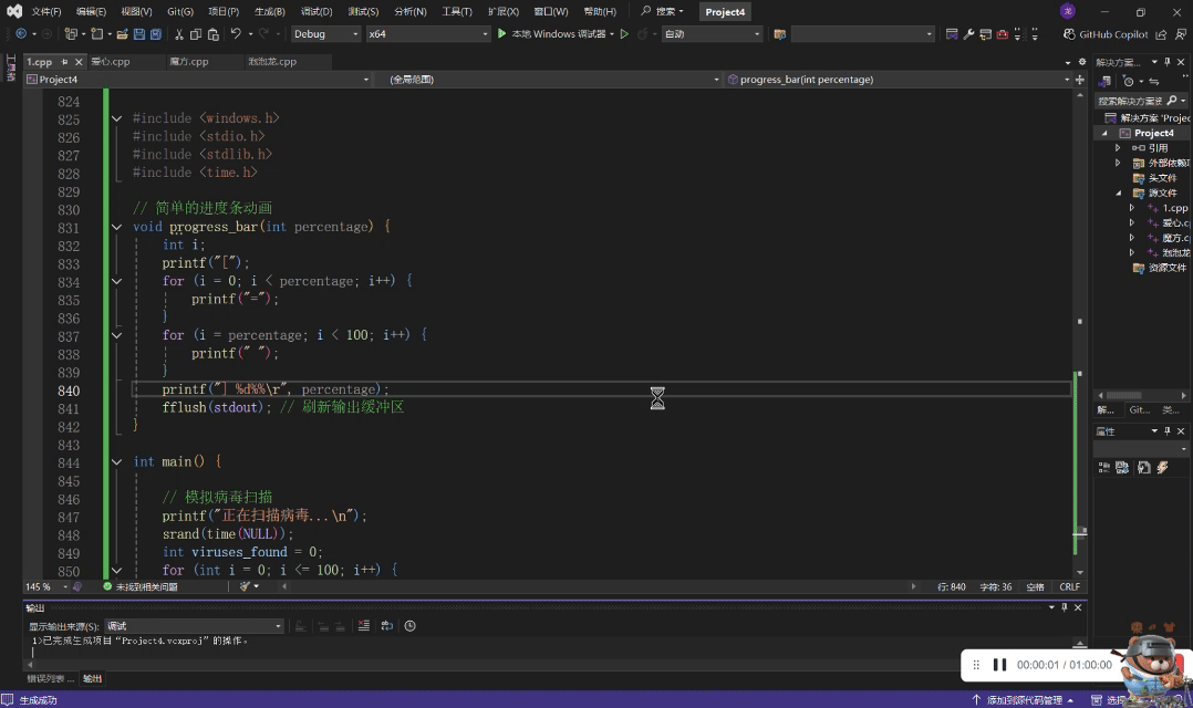 使用须知:模拟病毒筛查,最后杀毒时段,需要输入指定提示词(可自定义)。如果没输入指定提示词,则会循环输入,直到输入后,程序终止。