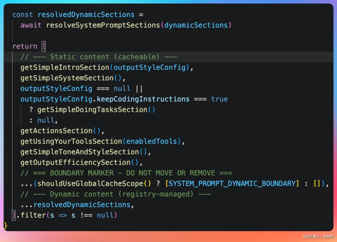 源码里有一个 systemPromptManager,管理着 110 多条碎片化的系统提示词片段。这些片段会根据当前环境动态拼接成一个完整的 prompt。