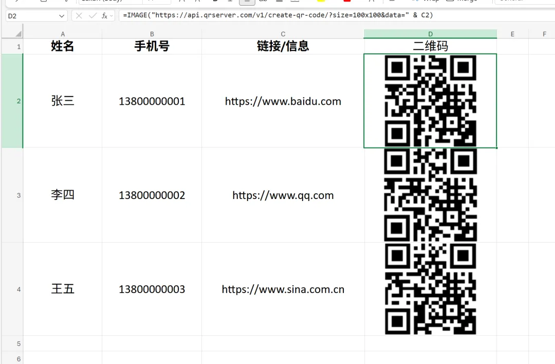 用 IMAGE函数直接显示二维码(Excel 365 可用)