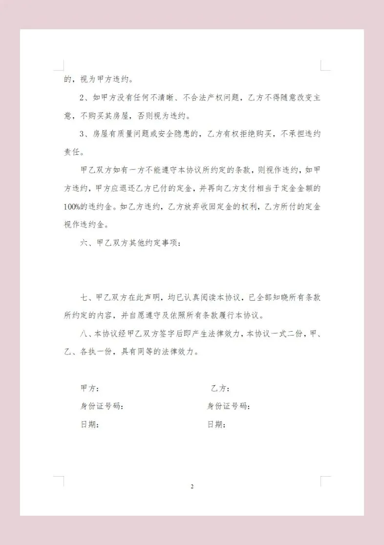 二手房定金合同模版(电子版)