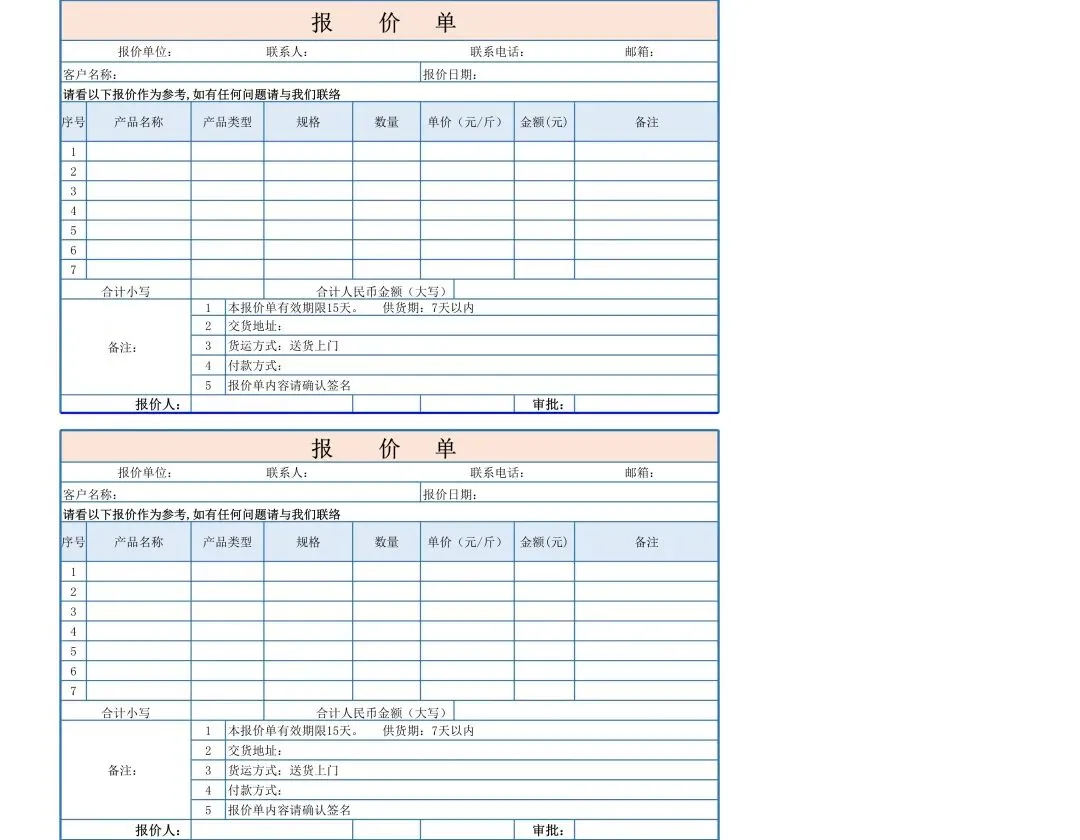 260+《报价单格式表》word|excel空白电子版,可修改打印/电子版可下载